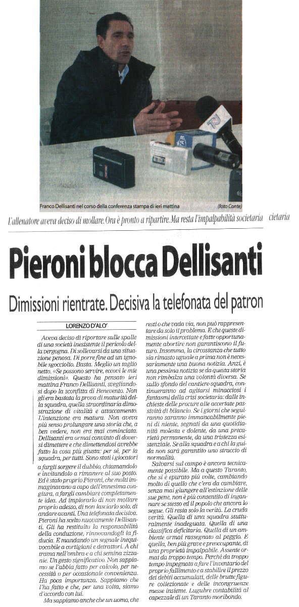 Grazie Franco e spero di rivederti sulla panchina del taranto Calcio in situazioni più favorevoli e consone ad una vera squadra di calcio.