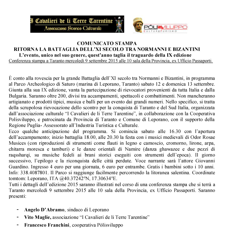 RITORNA LA BATTAGLIA DELL’XI SECOLO TRA NORMANNI E BIZANTINI