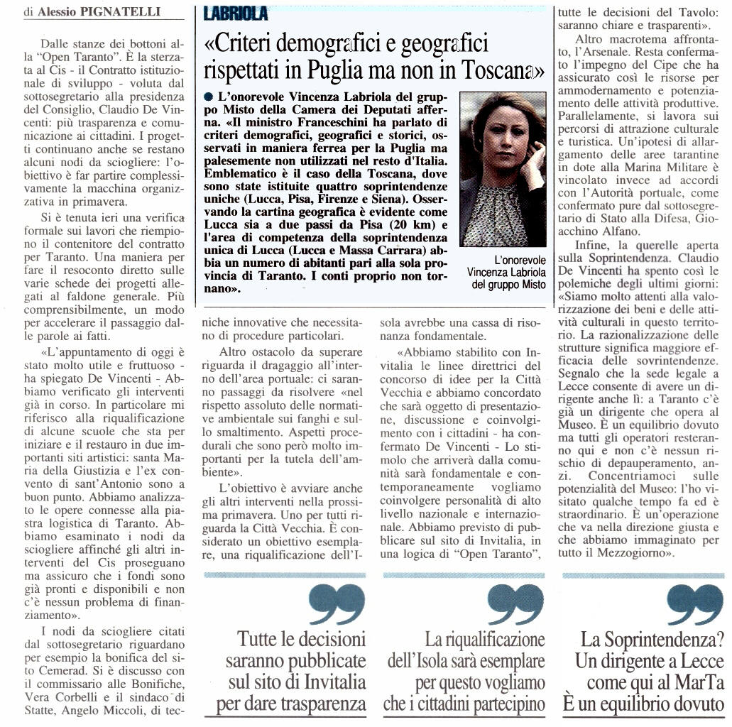 Soprintendenza, il Governo cerca di rassicurare i tarantini: resta tutto come prima, a Lecce