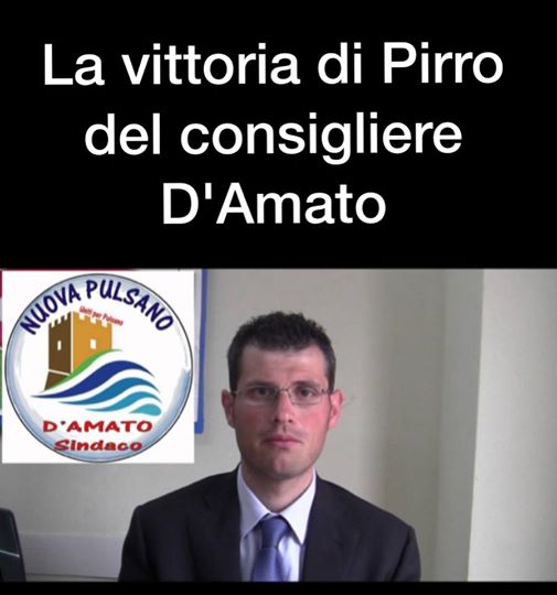 - Per concludere, visto che non ho ancora espresso un giudizio sull’argomento, voglio esprimere due parole sulla “pista di Pietro”, ovvero sulla proposta del d’Amato , approvata in assise comunale volta a realizzare una pista di atletica e dico al consigliere D’amato che, mentre lui pensava alla pista di atletica, il sottoscritto si preoccupava dei PROBLEMI SERI della scuola, ovvero il mancato funzionamento della caldaia che fa stare i bambini di Pulsano al freddo.