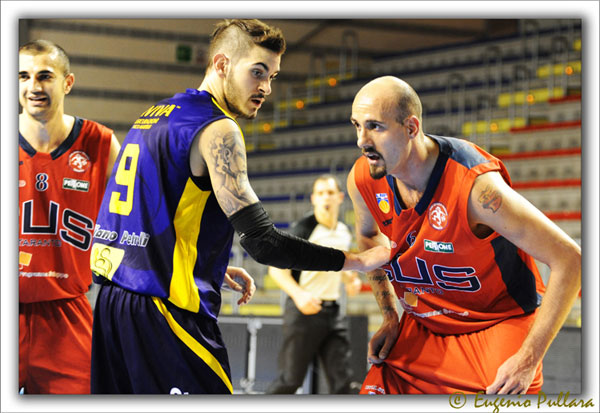 Una vittoria costruita nel primo quarto. Il Cus Jonico Bk Taranto fa sua gara1 della semifinale playoff battendo un coriaceo Lanciano davanti ad un PalaMazzola mai così pieno per una partita di basket maschile. Alla fine l’87-76 racconta dei primi 10’ perfetti dei rossoblu trascinati dalle triple di Sarli e dai rimbalzi di Leoncavallo e Valentini, intuizione a sorpresa di coach Leale nel quintetto base. La guardia ex Francavilla fa 7/9 da tre chiudendo a 29 punti. Trenta rimbalzi in tre è invece il bottino dei due pivot a cui si unisce un Giuffrè in versione centro “d’occasione”. Per il resto la solita prova di squadra che resiste anche al ritorno abruzzese (Castelluccia 22, Martelli 17) e traguarda mercoledì prossimo come match-point per la finale. Mano fredda in avvio per entrambe le squadre ma trova terreno fertile la scelta di Leale di partire col doppio pivot, Valentini e Leoncavallo, con Giuffrè, Fanelli e Sarli. I rimbalzi sono tutti rossoblu così come i punti dei due centri pareggiati dalla tripla di Martelli, 5-5. Poi un monologo cussino della durata di 6’ in cui Valentini sale in cattedra catturando rimbalzi e dispensando assist. Ne beneficia Sarli, mano rovente (4/5 da tre) per il 21-5 all’ottavo. Coach Salvemini prova a scuotere i suoi cambiando il quintetto più volte ma non ottiene niente di meglio perché il Cus è carico così come Leoncavallo e Fanelli mentre ancora Sarli segna da lontano il 28-11 del primo quarto. Leale fa rifiatare Valentini e nel secondo quarto punta su Moliterni che risponde subito presente con un paio di canestri e un paio di assist per il “cecchino” Sarli. Massimo vantaggio Taranto sul 38-18 al 13’ ma la flessione, fisica soprattutto, è in agguato. Lanciano trova i rimedi a rimbalzo e aggiusta le percentuali soprattutto con Castelluccia e Di Sante. Gli abruzzesi restituiscono parte del parziale, 14-4 e tornano a -10. Una sveglia per Fanelli la cui tripla vale il 45-32 all’intervallo. In cui diventano protagonisti i ragazzi dell’under 13 della Virtus Pallacanestro, società satellite del Cus Jonico, freschi campioni provinciali. Il tutto sotto gli occhi, tra gli altri, di Lillo Basile (esortato a non lasciare il Cras con tanto di striscione e cori), Mino D’Antona, Fabio Prosperi, Marta Masoni. Giuffrè esordisce nella ripresa con il suo primo canestro. Vantaggio a elastico con Lanciano che si affida alle sue famose triple, Martelli e Castelluccia per il ritorno a -10 prima del capolavoro di Valentini anche lui dai 6,75. La partita cala molto di intensità e il penetra-scarica degli ospiti trova maggiore spazio di esecuzione. L’ennesima azione di Castelluccia-Martelli segna il -10 ed allora ci vuole l’assist di Giuffrè per Sarli, la sua tripla ed i liberi di Leoncavallo per andare all’ultimo quarto sul 68-55. Ultimi 10’ davvero brutti cestisticamente parlando, la palla pesa e tanto. Gli errori aumentano così come diminuiscono i tiri segnati. Tanti anche i falli. Cus e Lanciano esauriscono il bonus quasi subito e si affidano alla lunetta. Vantaggio che resta in doppia cifra per Taranto (77-65 al 35’) che assesta il colpo vincente nel finale. Giuffrè, dopo una gara di sacrificio trova la penetrazione, il canestro e il 5° fallo di Blaskovic. La panchina di Lanciano si becca il tecnico. Liberi convertiti e partita messa in ghiaccio prima da Giuffrè e poi da Sarli. Il finale, dove trovano spazio Appeso e anche Stola, resta nervoso ma non toglie nulla alla vittoria del Cus Jonico che ora va a Lanciano sognando, concretamente, la finale playoff.